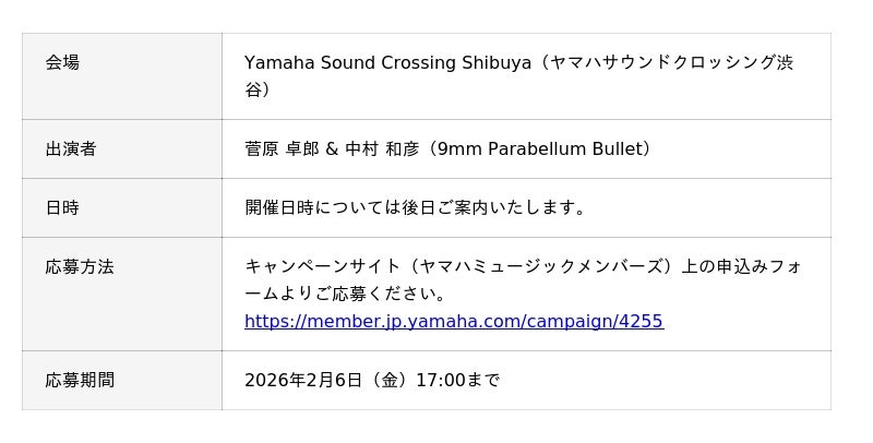 ※お問い合わせ種別は「イベント・キャンペーンについて」を選択し、お問い合わせタイトルに『YAMAHA GUITAR WINTER CAMPAIGN 2025』とご記入ください。