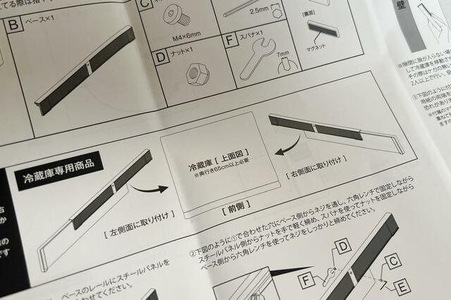 マグネット式のスライドパネルになっており、冷蔵庫横の隙間に取り付けて、必要なときだけ引き出せるという優れもの。