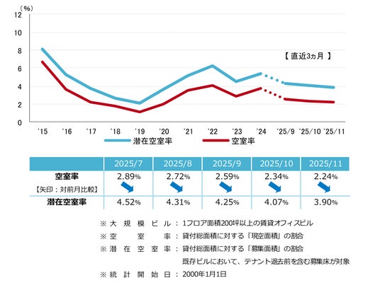 空室率 5ヵ月連続の低下 潜在空室率は2021年2月以来の3%台