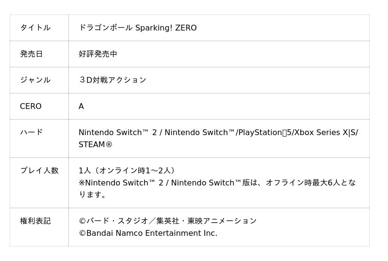 「ドラゴンボール Sparking! ZERO」「ドラゴンボール ゲキシン スクアドラ」