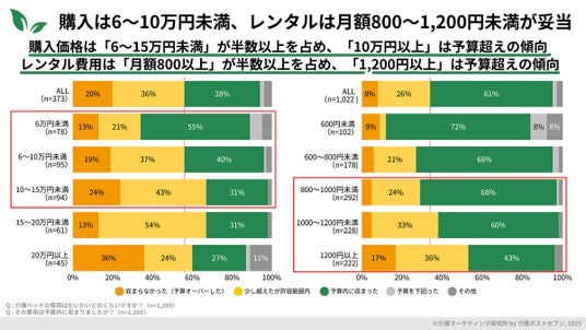 また、費用への納得感や、利用満足度は購入・レンタルともに高く、総じて介護ベッドは水準の高い福祉用具であると言えます。