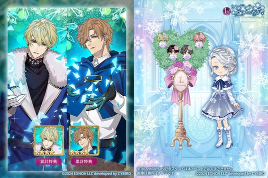 シンデレラとガラスの香炉イベント称号、★4【舞踏会への誘い】夜刀、★4【ガラスの靴の導き】ライ、ストーリー「【全7種】シンデレラとガラスの香炉」、雪華蝶が舞い降りる氷煌の幻想宮、雪華蝶のワンピース、雪華蝶の煌めきヘアアクセサリー、雪華蝶のブーツ、その他ゲーム内アイテム