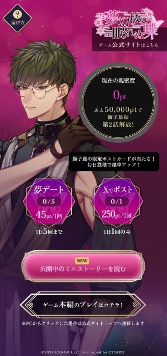 ストーリーはユーザー全体の「親密度」に応じて解放され、「親密度」はWebでの夢デートやXへのポストなどの行動で上げることができます。