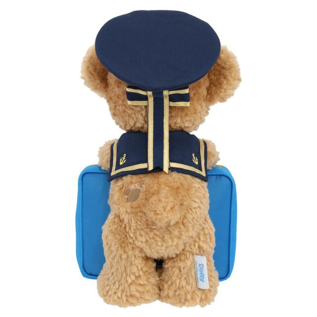 ウォーターフロントパークでグリーティングしていたダッフィーと初めて写真を撮ったときと同じコスで、青いトランクにもたれかかってる!