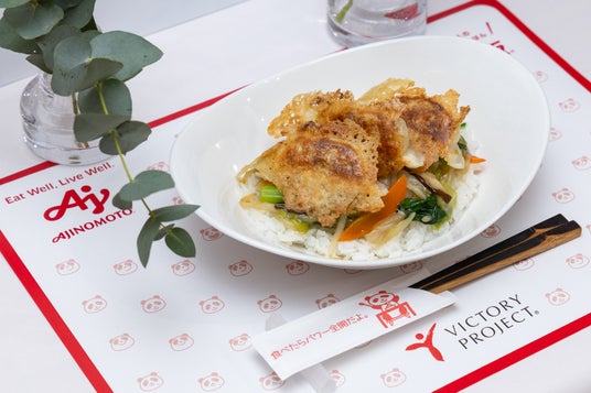 「JOC G-Road Station」でTEAM JAPANに提供される、ミラノスペシャルメニュー“Power Gyoza DON” をお披露目。