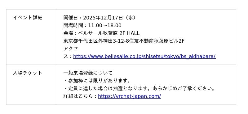 「VRChat Japan Business Experience 2025」公式サイト:https://vrchat-japan.com/