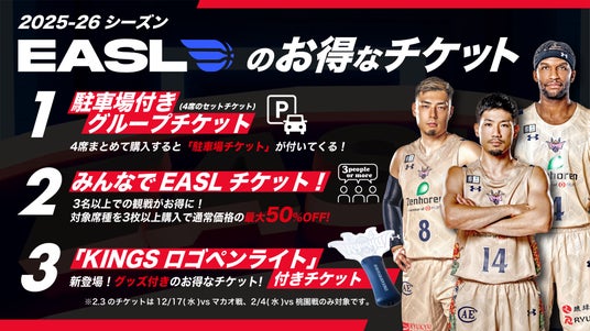 便利な「駐車場付グループチケット」や、最大50%オフの「みんなでEASLチケット」など、職場の同僚やご友人とみんなで楽しめる、EASL限定プランを多数ご用意しております。この機会に、東アジアの強豪との対戦を沖縄サントリーアリーナでお楽しみください!