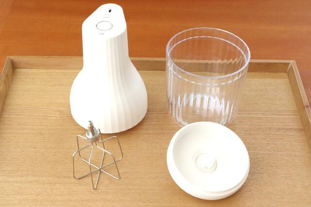 パーツは、本体、カップ、中間パーツに、泡立てる「ウィスク」と呼ばれる部分のたった4つだけ。