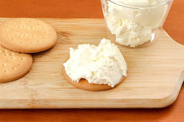 ビスケットにのせるだけで、お手軽チーズケーキが楽しめます。