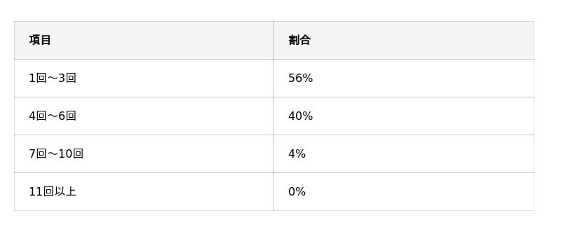「1回~3回」と答えた方が過半数、「4回~6回」と答えた方が4割でした。
