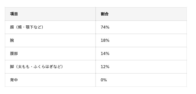 顔への施術が多かったことも影響し、顔まわりや肌質に関する変化を実感した人が多い傾向が見られます。