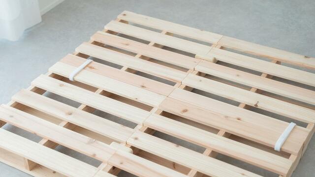 「すのこパレット4枚セット」が2個(計8枚)あれば、シングルサイズの布団を敷くことができます。私は、ダブルサイズの布団用に3個(計12枚)を用意しました。