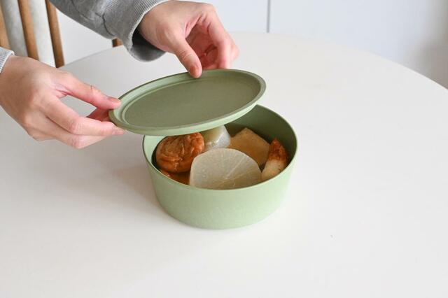 保存するときはフタとして、食卓に出すときは取り皿や別の料理のお皿にできるので、洗い物が減ってうれしい〜!