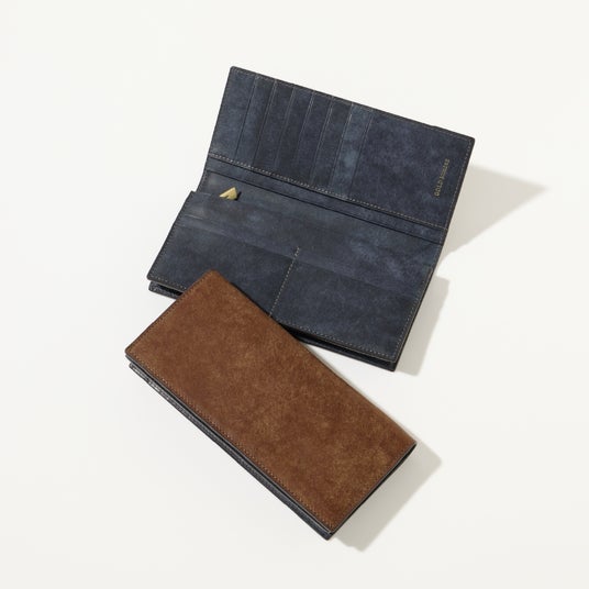 本シリーズは、イタリア最高級皮革「プエブロ」を贅沢に使用。表面を意図的に毛羽立たせた「和紙」のような質感から、使い込むほどに深い光沢を放つ「劇的な経年変化」を楽しめるのが最大の特徴です。