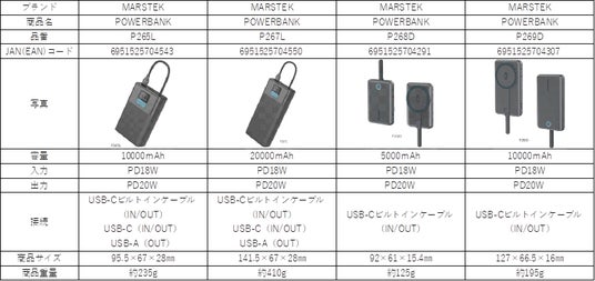 「MARSTEK(マーステック)POWER BANK(パワーバンク)」シリーズ4アイテムを