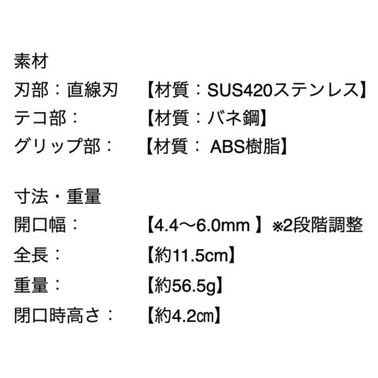 開口幅:4.4~6.0mm ※2段階調整可