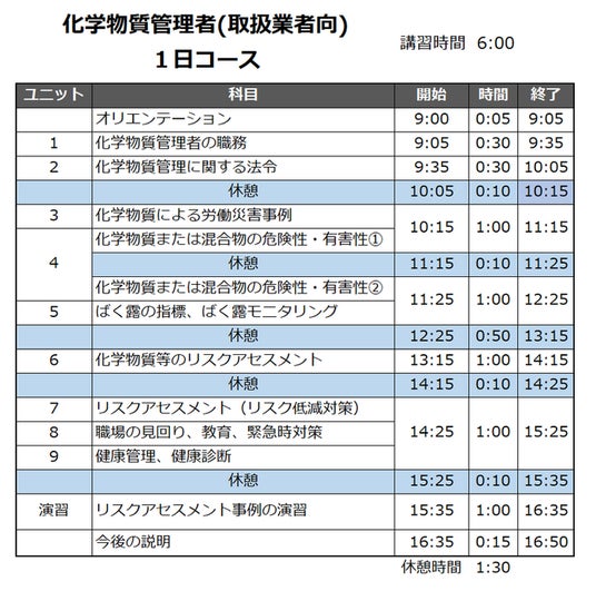 令和6年4月以降に化学物質管理者として選任される予定の方を対象に、必要な知識と実務能力を習得していただくため、学科6時間のカリキュラムによる講習です。