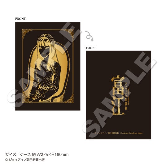 チケットホルダー、トレーディング缶バッジvol.1(全6種)・vol.2(全6種)、ラメアクリルアートボード、トレーディングポストカード(全10種)、ポストカードホルダー、缶ミラー(全3種)、三人の富江アクリルキーホルダー(全3種)、自ら増殖をはじめる富江巾着、自ら増殖をはじめる富江ブロックメモ、ステッカーセット(2枚入り)、クリアしおりセット、パネルガチャ(ミニアクリルチャーム全10種)