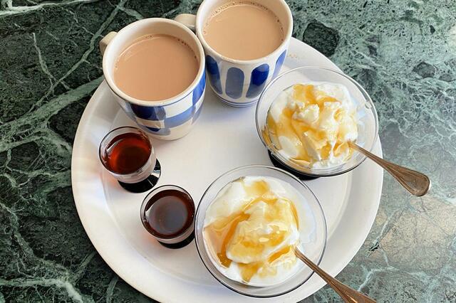 ヨーグルト+ハチミツ、今日の元気、ミルクティ。
