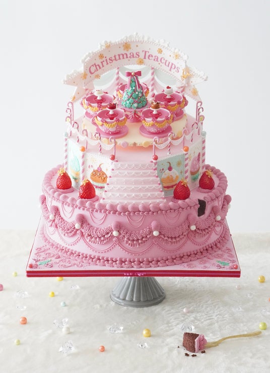 本作品「Christmas Teacups」は、ティーカップのアトラクションをテーマにしたクリスマス仕様のシュガーアートで、