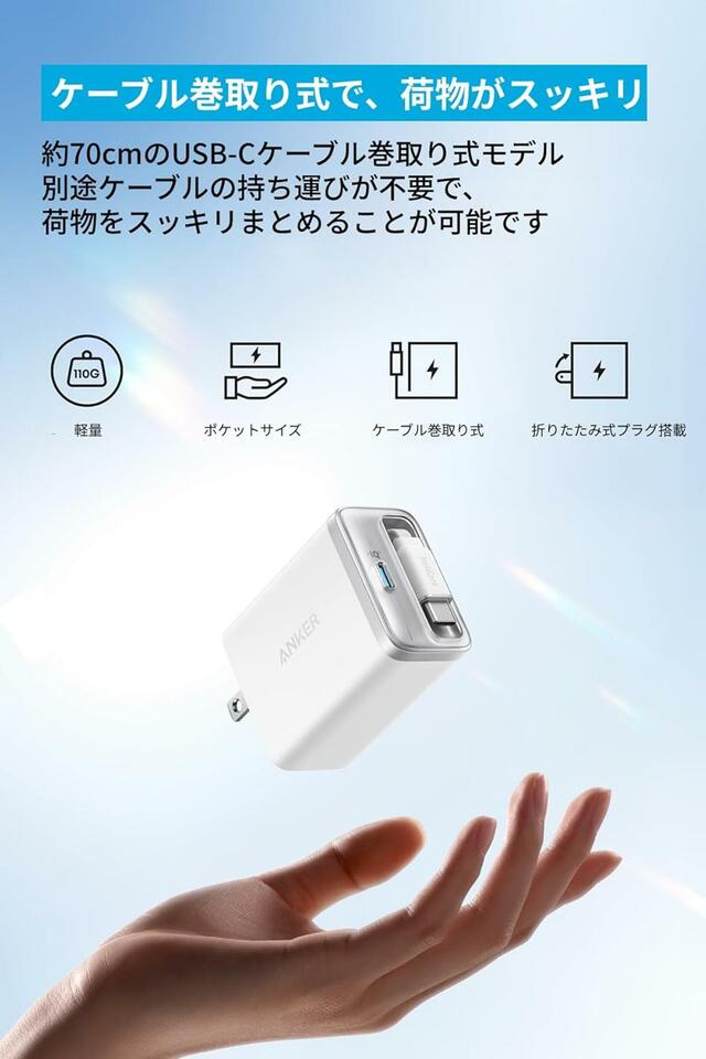 Anker(アンカー)の「Nano Charger(35W, 巻取り式 USB-Cケーブル)」は、ケーブル一体型で荷物を減らしつつ、最大35W出力に対応するコンパクト充電器。現在は、Amazonでクーポン利用により12%オフで購入可能に!