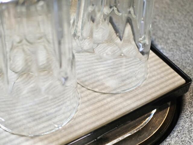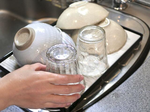 洗ったコップを置いた直後は水たまりのようになっていても……