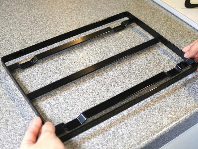 ベースの内寸は30.2cm×21.7cmとコンパクトで邪魔にならないサイズ感。キッチンの調理台やカウンターに収まりました。