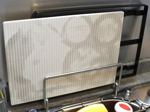 使わないときはまな板立てに立てたり、そのまま壁に立てかけたりしています。まな板以上にスリムなので、戸棚にも収納しやすいですよ。