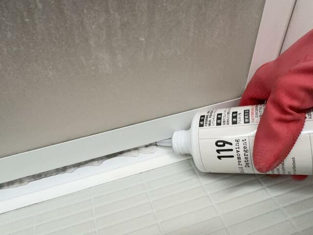 説明書き通り、まずはカビ以外の汚れと水分を取り除いた後、ジェルを塗布していきます。