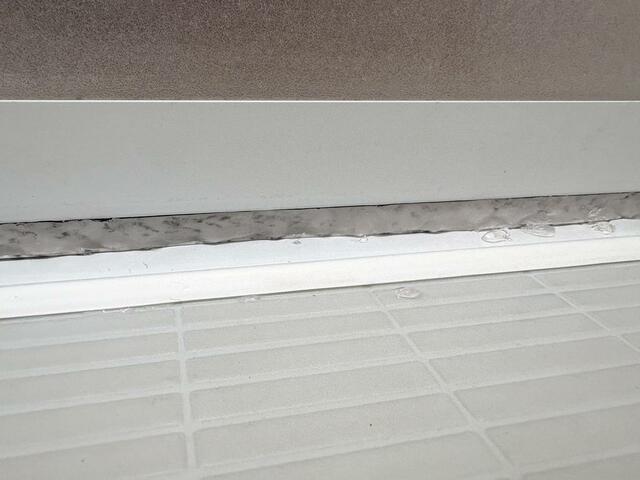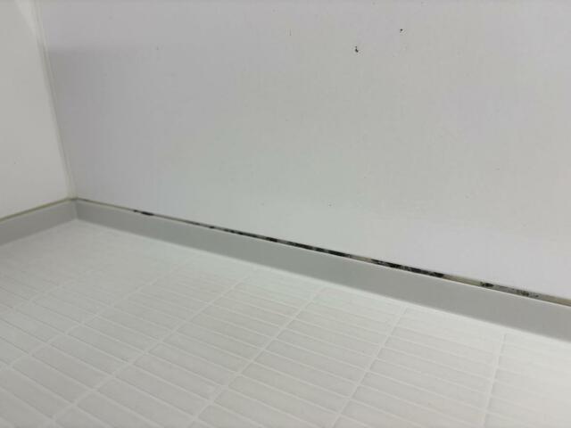住み始めた頃は真っ白だったバスルームですが、壁の境目の目地はこの通り。