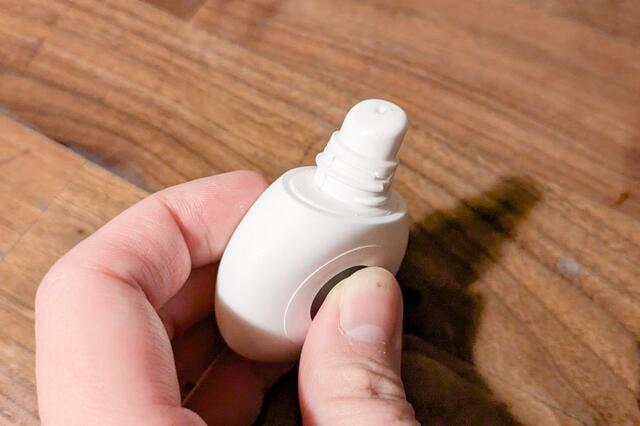 ボトル部分が柔らかい素材でできていて、ぐっと押すとバームが出ます。