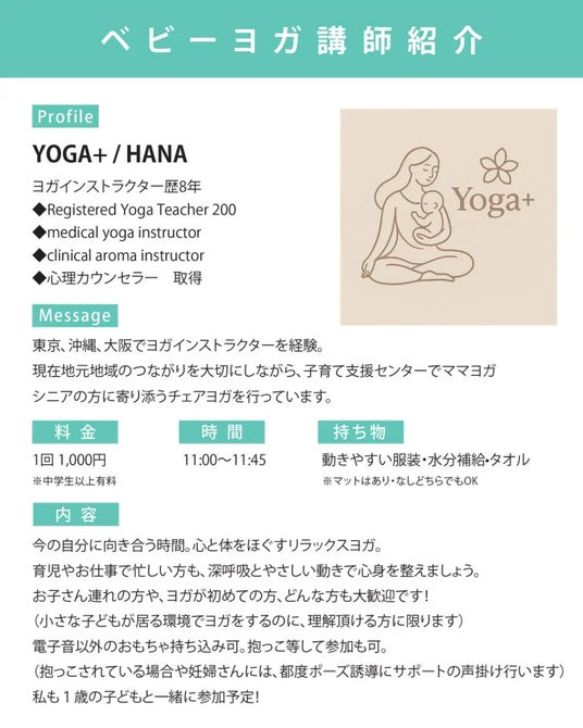 ベビーヨガや手形アート、季節のフォト撮影会など、親子で楽しみながら“今しかない成長の瞬間”を形に残せるコンテンツを多数用意。