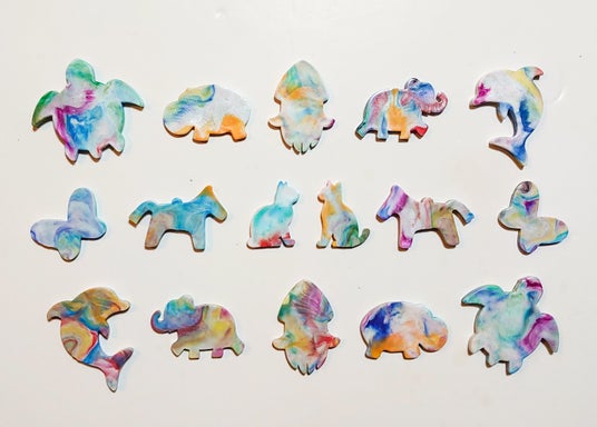 ワークショップでは、日常的に捨てられているペットボトルキャップを粉砕し、加熱・成形してキーホルダーに加工。
