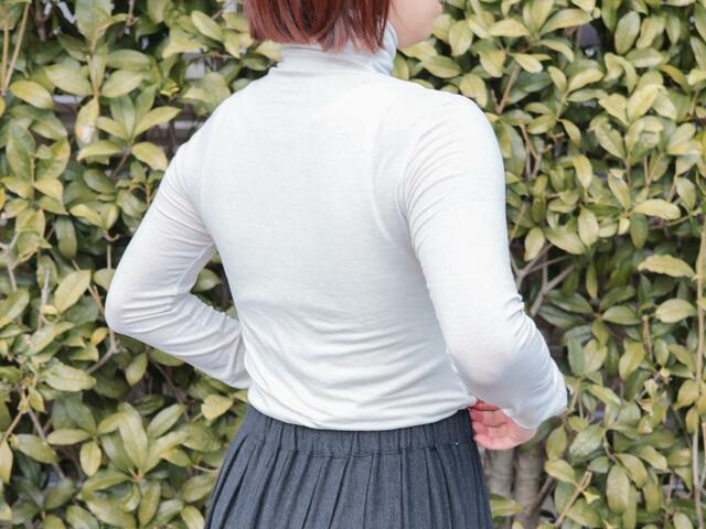 レイヤードに使えるタートルネックはたくさんある中、こちらは肌触りがピカイチ。