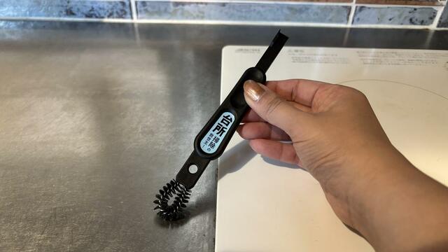 「すき間掃除専用」のアイテムで、片側は「汚れをこそぎとるヘラ」に、反対側は「汚れをこすり取るブラシ」になっています。