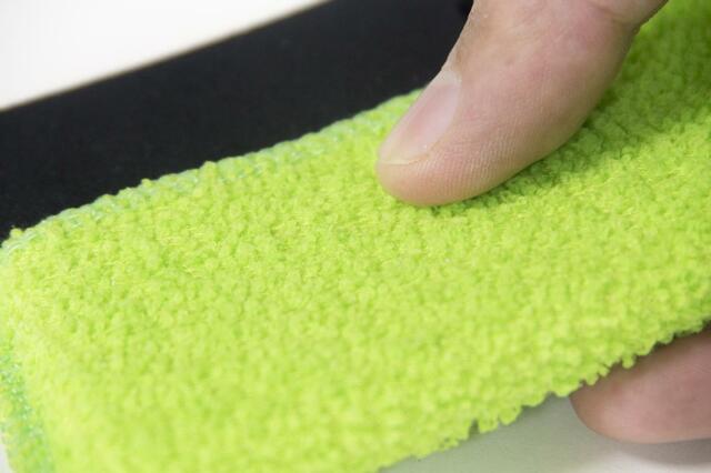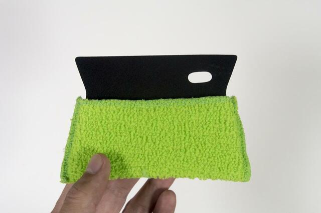 緑色の面は硬めの凹凸になっているので、傷つきやすい素材に使う時はあらかじめ傷かつかないか目立たない部分で確認して使いましょう!