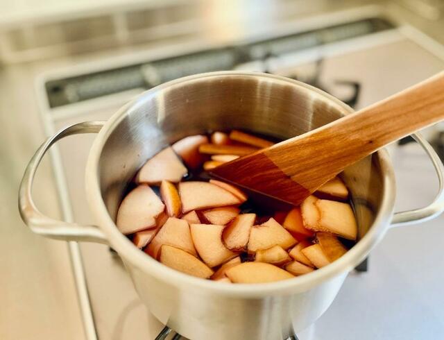 煮込んでいるそばから、シナモンとりんご、そしてワインが重なり合う、温かくて芳醇な香りが家中に広がります。