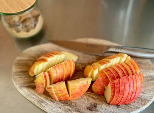 りんごの量はお好みでどうぞ。ワインが染み込みやすく、カップにも収まりやすい薄切りがおすすめです。