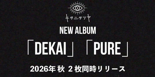 キタニタツヤが、2026年7月に自主企画の対バンライブ“Hugs Vol.6"を開催すること、秋にNew Album「DEKAI」、「PURE」を2枚同時にリリースすることを発表した。