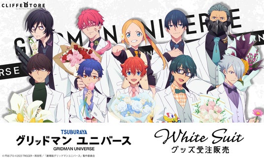 『グリッドマン ユニバース』に登場する響裕太、麻中蓬、新世紀中学生たちなどを中心とした男性キャラクターのホワイトスーツ姿の新作グッズが登場!