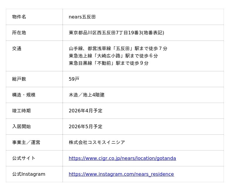 大和ハウスグループの株式会社コスモスイニシア(本社:東京都港区、社長:高智 亮大朗)は、「“ゆるやかな隣人”のいる新しい暮らし」をコンセプトに展開するシェアレジデンス「nears(ニアーズ)」 の第3弾となる『nears五反田』を2026年5月に開業します。開業に先立ち、12月15日からオンライン説明会の申し込み受付ならびに、1棟目『nears川崎』での内覧会の予約受付を開始します。