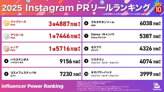 - Instagram PR(タイアップ)リールランキング