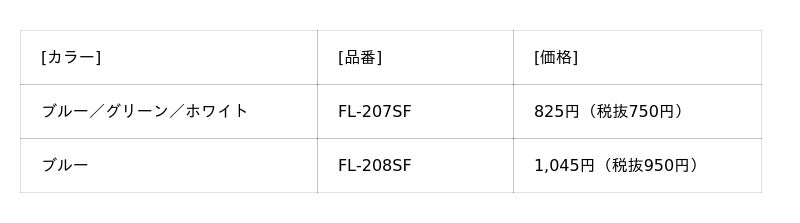 サイズはレギュラー幅とワイド幅の2タイプ。カラーはレギュラーがブルー、グリーン、ホワイトの3色、ワイドがブルーの1色。メーカー希望小売価格(税込)は、レギュラーが825円、ワイドが1,045円です。