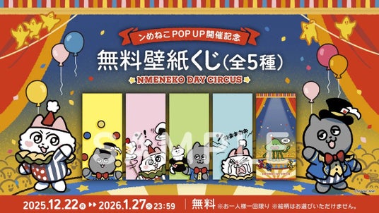 『ンめねこデイサーカス POPUP SHOP 』の開催を記念してオンライン上で「オリジナルデジタル壁紙(スマホサイズ)」が当たる無料壁紙くじを12月22日(月)11:00より開催決定!!