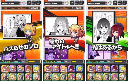 『【推しの子】』のストーリーを漫画コマととも楽しめるメインクエストでは、『ジャンプ+ジャンブルラッシュ』ならではのゲーム体験をお届け!