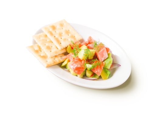 1.広島レモンサーモンとアボカドをあわせて。ほんのりナンプラーとにんにくがアクセント!
