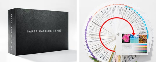 グラフィック取り扱いの用紙から約160種を厳選し1冊にまとめた紙見本「ペーパーカタログ(総合版)」のイメージ