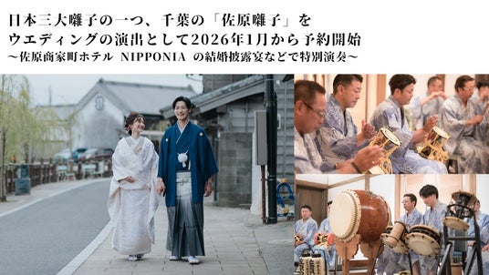 歴史的建造物を修復・保存し結婚式場やレストラン・ホテル等に再生する事業を展開するバリューマネジメント株式会社(本社:大阪府大阪市、代表:他力野 淳、以下、当社)は、分散型ホテル「佐原商家町ホテル NIPPONIA」(千葉県香取市、以下、当ホテル)にて、当施設での結婚式の演出として日本三大囃子の一つとされる「佐原囃子(さわらばやし)」の提供を開始し、2026年1月1日より予約を受け付けます。
