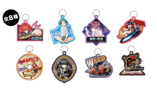 カプセルの中には集英社ゲームズのデジタルゲームタイトルのキャラクターがデザインされたキーホルダーが入っています。デザインは全部で8種です。