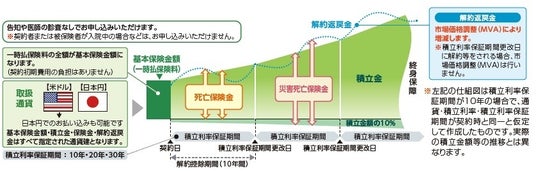 - 取扱通貨を米ドル・日本円から、積立利率保証期間を10年・20年・30年からお選びいただけます*1。